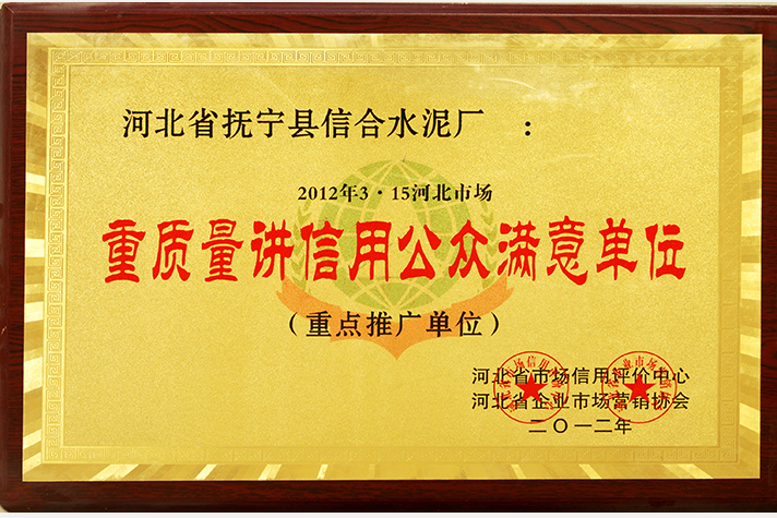 "重質(zhì)量講信用公眾滿意單位"榮譽稱號