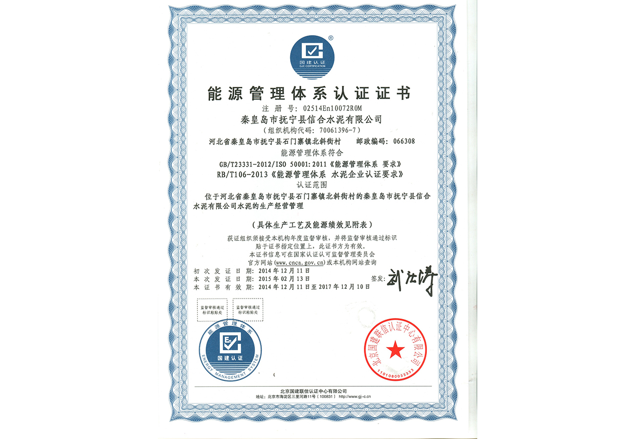 能源管理體系認證證書